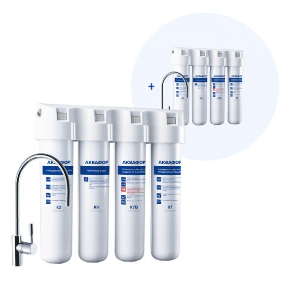 Обратноосмотические фильтры используются для абсолютной защиты от накипи, т.к. полностью устраняют соли жесткости из воды.нетЧисло ступеней очисткиКартриджи последовательно очищают воду и от видимых примесей, и от растворенных. Первый картридж задерживает более крупные частицы, а каждый последующий - более мелкие. Чем больше ступеней - тем лучше фильтр очистит воду: поймает более мелкие видимые частицы ржавчины, песка и ила, успеет захватить из воды максимум растворенных примесей - хлора, нитратов, тяжелых металлов и других.4МинерализацияПроисходит после финишной очистки воды. Необходима прежде всего в фильтре обратного осмоса, поскольку такой фильтр полностью устраняет из воды все примеси, в том числе минералы. Минералы добавляются в оптимальной концентрации - для пользы и привычного вкуса воды.нетПостфильтрацияФинальный этап очистки воды: картриджи постфильтрации удаляют самые мелкие механические частицы и кондиционируют воду, придавая ей более приятный вкус.нетНакопительная емкостьОбычно нужна в фильтрах обратного осмоса. Глубокая фильтрация требует времени. Чтобы Вам не приходилось ждать, пока вода наберется в чайник или кастрюлю, почти во всех моделях используется накопительный бак для чистой воды или другая емкость. В стандартном фильтре обратного осмоса под мойку воды в баке достаточно для семьи из 5-6 человек.нетФильтрующий модуль в комплектедаОтдельный крандаДавление в водопроводе не более, атмМаксимальное давление воды на входе в систему, при котором возможна стабильная работа фильтра.6,5Ширина, смОбратите внимание на габариты фильтра, и измерьте, сколько свободного пространства в предполагаемом месте установки.26,0Глубина, смОбратите внимание на габариты фильтра, и измерьте, сколько свободного пространства в предполагаемом месте установки.9,0Защита корпуса от гидроударовдаИсходная водаЖесткая вода – вода с избытком минеральных солей. От нее появляется накипь в чайнике, известковый налет на сантехнике и разводы на посуде. Мягкая вода – та, в которой мало минеральных солей. Нет накипи в чайнике и разводов на посуде. Фильтры для мутной воды и фильтры от ржавчины, как правило, имеют несколько стадий очистки и дополнительный полипропиленовый картридж. Он задерживает механические частицы ила, песка и ржавчины и защищает картриджи более глубокой очистки.жёсткаяУстраняет мутностьМутность водопроводной воды может говорить о том, что в ней много мелких механических частиц. Важно, чтобы в фильтре был установлен дополнительные картридж механической предфильтрации (полипропиленовый) - он продлит жизнь остальным картриджам более тонкой очистки.даУстраняет ржавчину, бурый осадокЛюбой фильтр под мойку удалит из воды крупные и мелкие частицы ржавчины. Некоторые фильтры имеют повышенный ресурс по железу: они дольше служат в такой воде, поскольку лучше подходят для удаления из воды железа и механических частиц ржавчины.нетЗащита от бактерийВсе проточные фильтры в той или иной степени защищают от бактерий. Например, добавление серебра препятствует их размножению. Это стандартная степень защиты. Если в семье есть дети, пожилые люди или аллергики, воду рекомендуется обеззараживать, то есть полностью удалять микроорганизмы. Повышенную защиту от бактерий дают фильтры с половолоконной мембраной. Это пучок тру