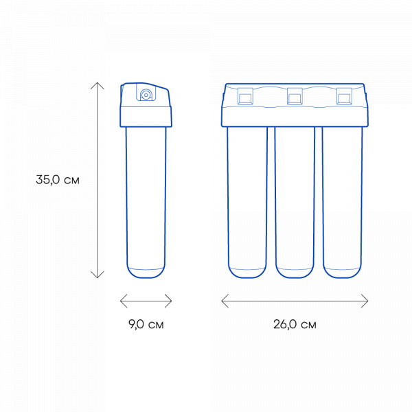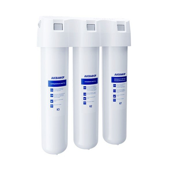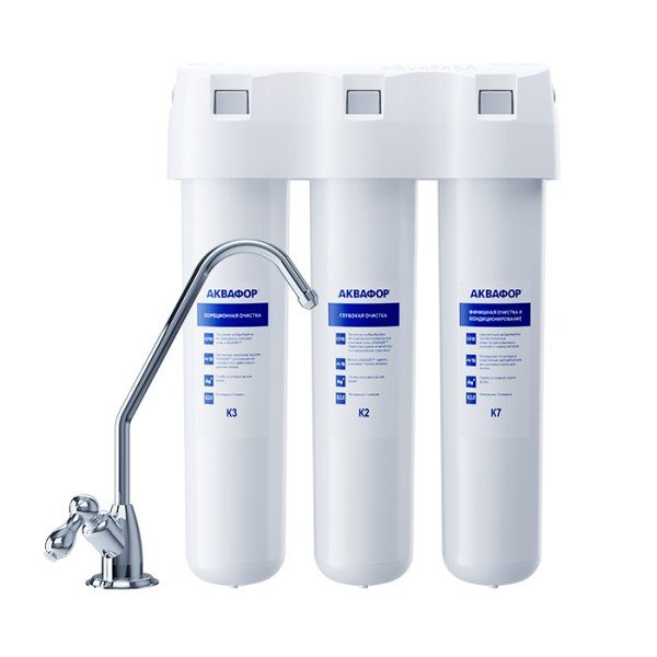 Обратноосмотические фильтры используются для абсолютной защиты от накипи, т.к. полностью устраняют соли жесткости из воды.нетЧисло ступеней очисткиКартриджи последовательно очищают воду и от видимых примесей, и от растворенных. Первый картридж задерживает более крупные частицы, а каждый последующий - более мелкие. Чем больше ступеней - тем лучше фильтр очистит воду: поймает более мелкие видимые частицы ржавчины, песка и ила, успеет захватить из воды максимум растворенных примесей - хлора, нитратов, тяжелых металлов и других.3МинерализацияПроисходит после финишной очистки воды. Необходима прежде всего в фильтре обратного осмоса, поскольку такой фильтр полностью устраняет из воды все примеси, в том числе минералы. Минералы добавляются в оптимальной концентрации - для пользы и привычного вкуса воды.нетПостфильтрацияФинальный этап очистки воды: картриджи постфильтрации удаляют самые мелкие механические частицы и кондиционируют воду, придавая ей более приятный вкус.нетНакопительная емкостьОбычно нужна в фильтрах обратного осмоса. Глубокая фильтрация требует времени. Чтобы Вам не приходилось ждать, пока вода наберется в чайник или кастрюлю, почти во всех моделях используется накопительный бак для чистой воды или другая емкость. В стандартном фильтре обратного осмоса под мойку воды в баке достаточно для семьи из 5-6 человек.нетФильтрующий модуль в комплектедаОтдельный крандаДавление в водопроводе не более, атмМаксимальное давление воды на входе в систему, при котором возможна стабильная работа фильтра.6,5Ширина, смОбратите внимание на габариты фильтра, и измерьте, сколько свободного пространства в предполагаемом месте установки.26,0Глубина, смОбратите внимание на габариты фильтра, и измерьте, сколько свободного пространства в предполагаемом месте установки.9,0Защита корпуса от гидроударовдаИсходная водаЖесткая вода – вода с избытком минеральных солей. От нее появляется накипь в чайнике, известковый налет на сантехнике и разводы на посуде. Мягкая вода – та, в которой мало минеральных солей. Нет накипи в чайнике и разводов на посуде. Фильтры для мутной воды и фильтры от ржавчины, как правило, имеют несколько стадий очистки и дополнительный полипропиленовый картридж. Он задерживает механические частицы ила, песка и ржавчины и защищает картриджи более глубокой очистки.мягкаяУстраняет мутностьМутность водопроводной воды может говорить о том, что в ней много мелких механических частиц. Важно, чтобы в фильтре был установлен дополнительные картридж механической предфильтрации (полипропиленовый) - он продлит жизнь остальным картриджам более тонкой очистки.нетУстраняет ржавчину, бурый осадокЛюбой фильтр под мойку удалит из воды крупные и мелкие частицы ржавчины. Некоторые фильтры имеют повышенный ресурс по железу: они дольше служат в такой воде, поскольку лучше подходят для удаления из воды железа и механических частиц ржавчины.нетЗащита от бактерийВсе проточные фильтры в той или иной степени защищают от бактерий. Например, добавление серебра препятствует их размножению. Это стандартная степень защиты. Если в семье есть дети, пожилые люди или аллергики, воду рекомендуется обеззараживать, то есть полностью удалять микроорганизмы. Повышенную защиту от бактерий дают фильтры с половолоконной мембраной. Это пучок тру